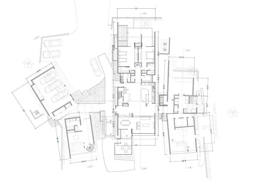 The separated yet connect architecture blurs the distinction between building and landscape offering a lifestyle of living in the site, rather than just living in the building. Multiple moments are designed to link the family and guests to the outside through views, private courts, exterior pathways, and the elevated terracing of the spaces.