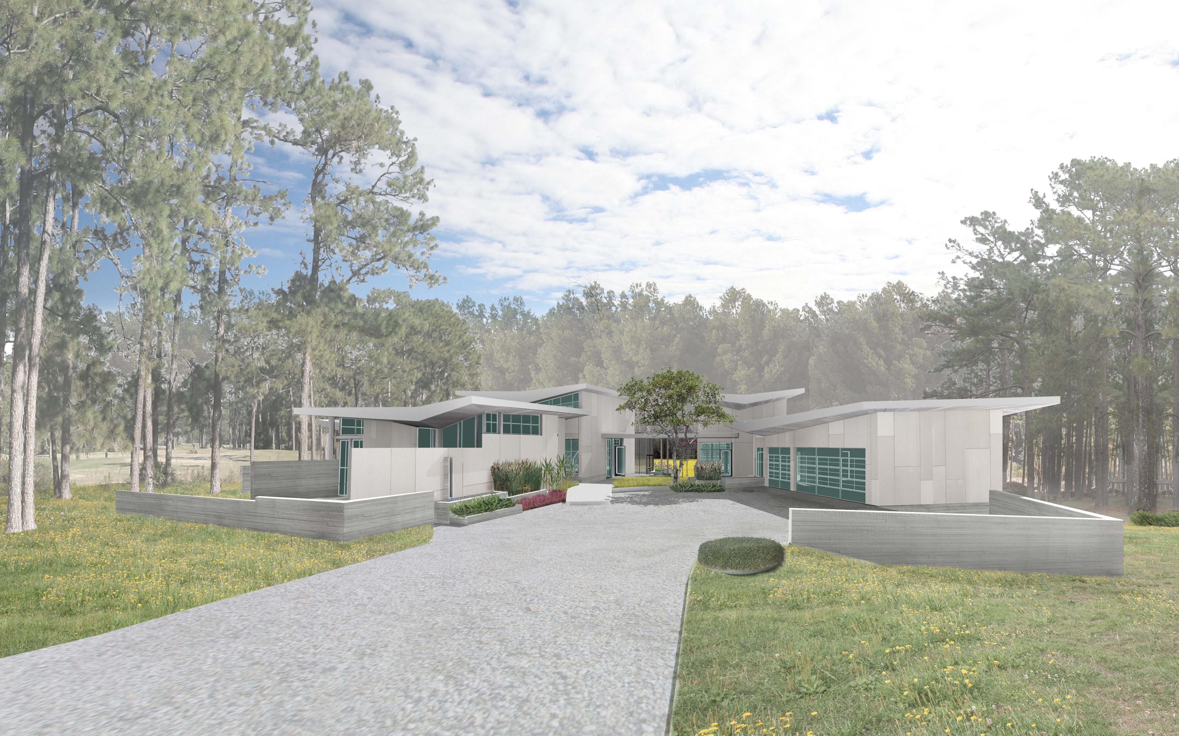 This three-module home – Main House, Master Suite, and Guest Suit – draws on the domestic trilogy of family, couple, and guest. A gently southward sloping site allows the living spaces to be terraced, opening to the southern views while using effective summer sun shading strategies. Expansive and framed private views link the family to the natural pine forest and wetland habitats.