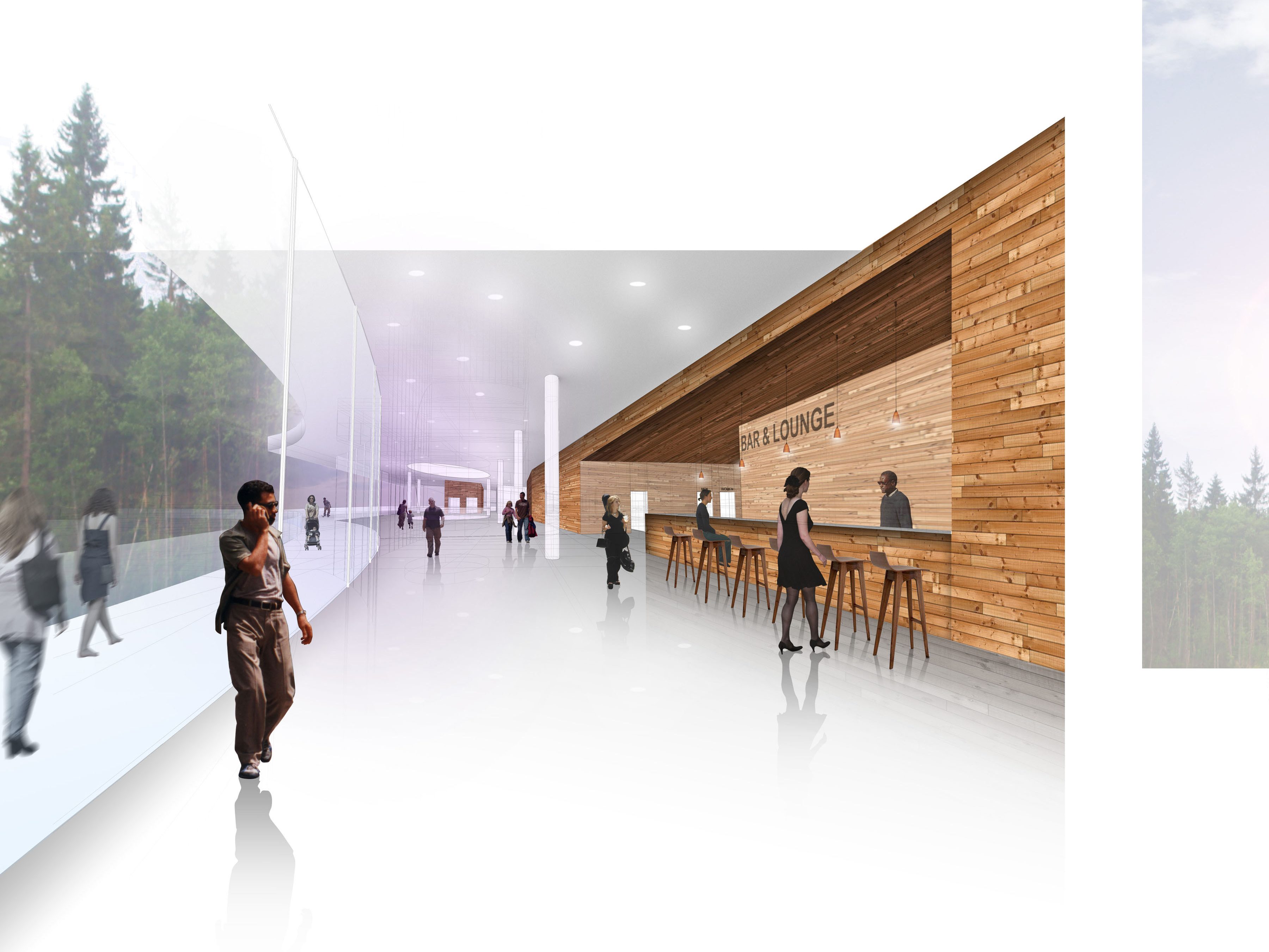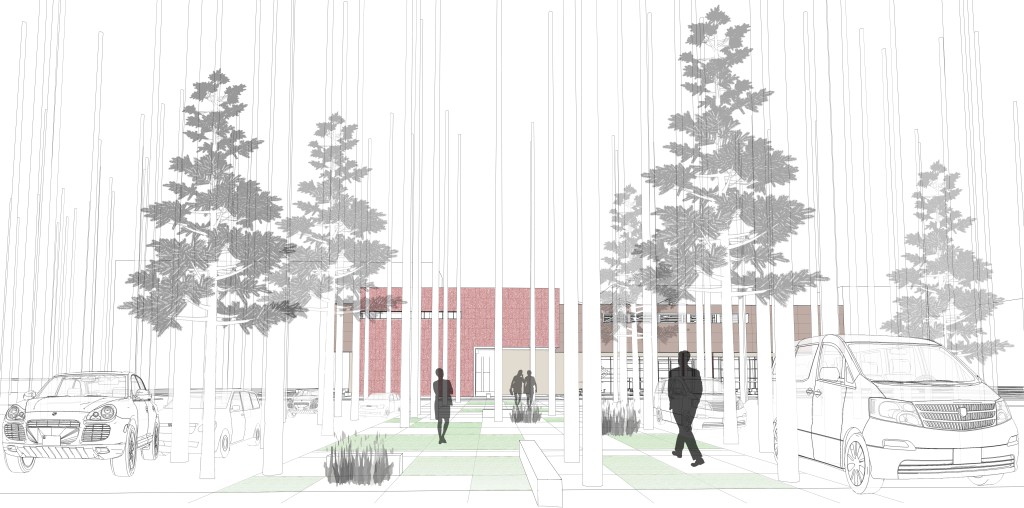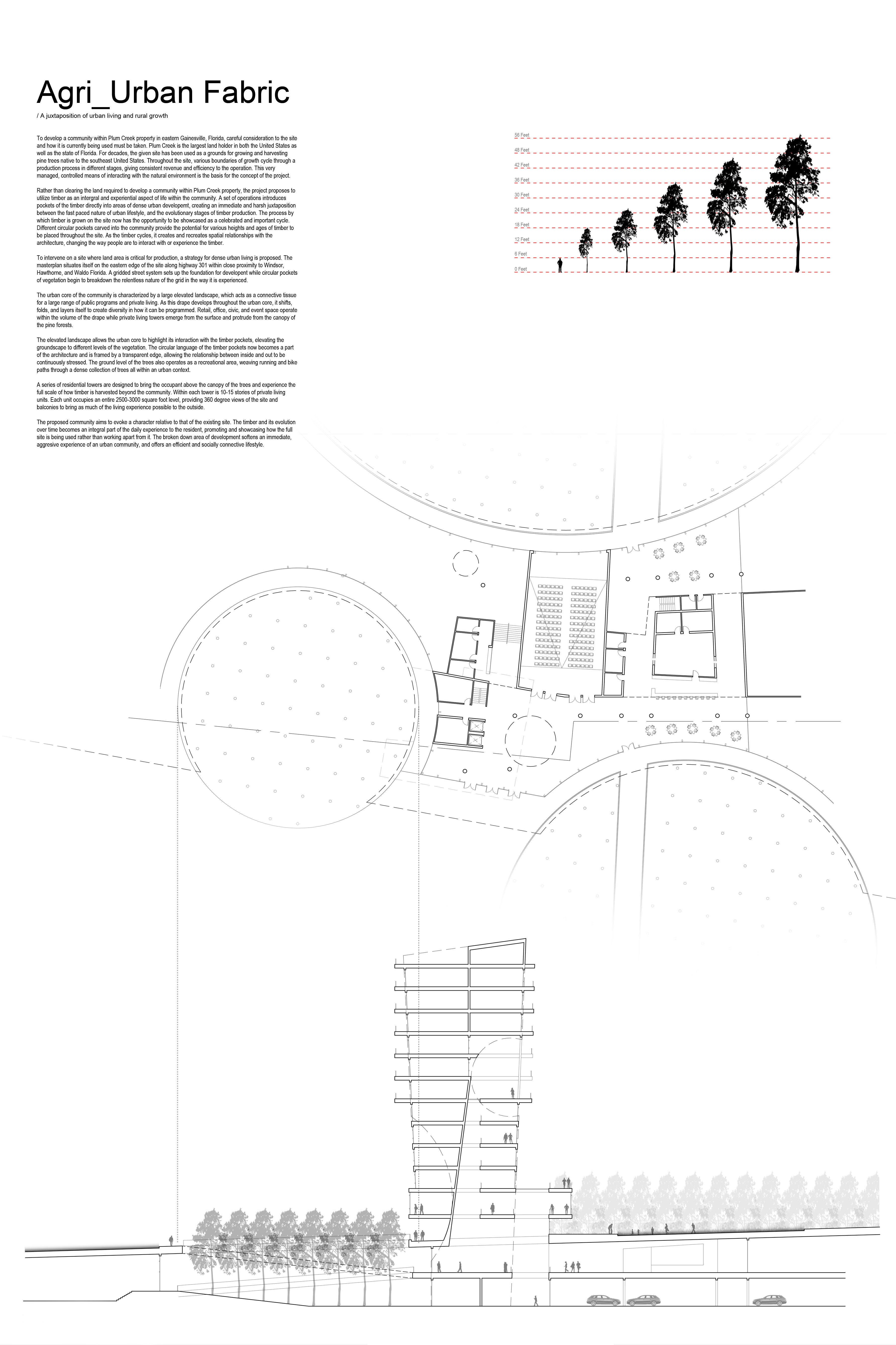 The project proposes to utilize timber as an integral and experiential aspect of life within the community. A set of operations introduces pockets of the timber directly into areas of dense urban development, creating a juxtaposition in which timber is grown to be showcased as a celebrated and important ecological cycle.