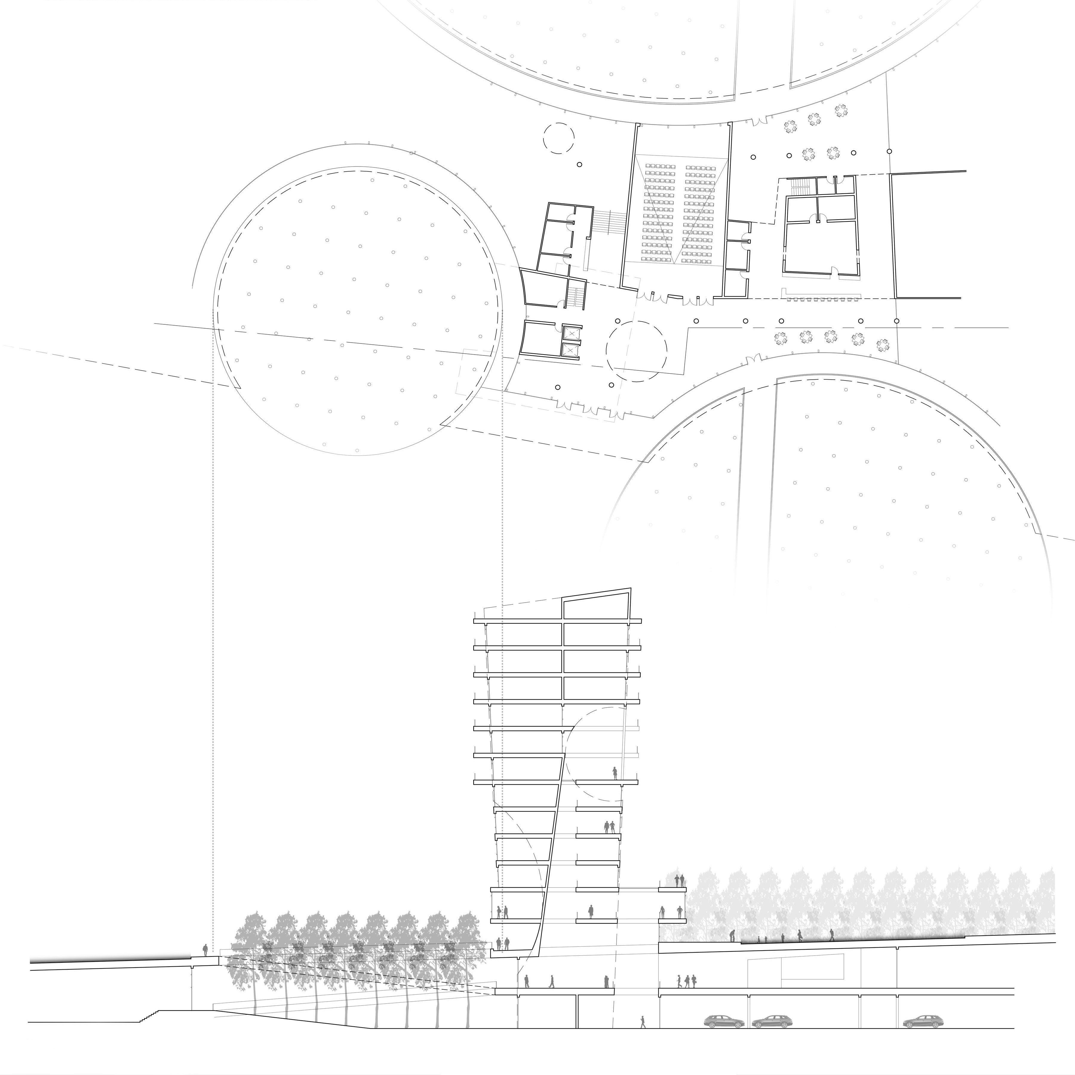 The project proposes an urban community that is contextually and socially sensitive, juxtaposing existing use of the site with new interventions in a way to enhance the living experience. The organization and integration of various programmatic elements encourage efficient and socially progressive means of living, reducing dependence on the automobile and condensing a range of private and public functions.