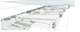 museums, restaurants, schools, and civic buildings. Corridors effectively create distinctions within the denser-built spaces, which like micro-communities, work together to create a diverse and dynamic whole.