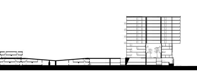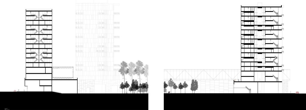 Influenced by the construction technique and proportions of the urban beehive, the residential towers are a series of one-story flats and two and three-level living units that allow for a variety of living conditions and possibilities.