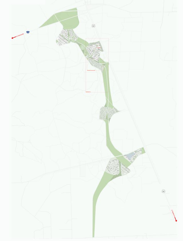 The Green Bridge community is based on existing transportation infrastructure, soils and drainage, proximity to the natural wildlife corridor, and limiting impact on adjacent communities.