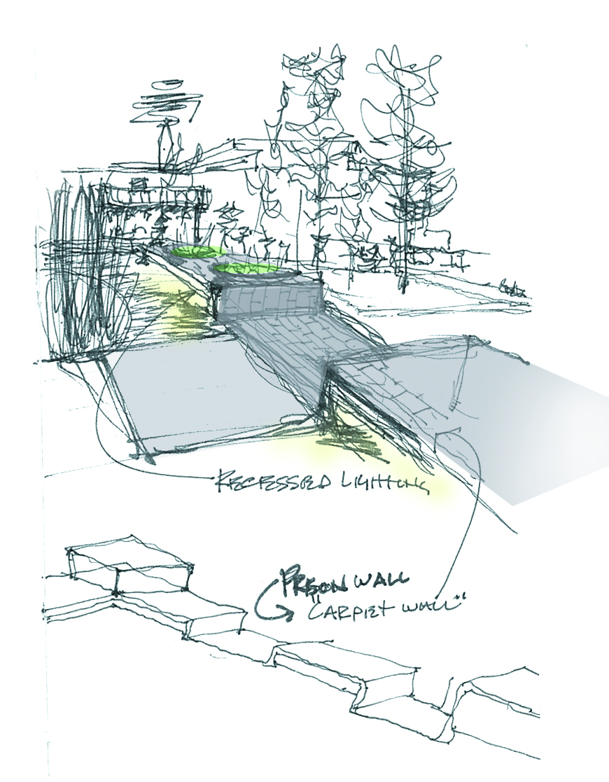Bicycle and pedestrian paths are carefully designed to provide direct routes while offering opportunities to enjoy the garden areas of the site.