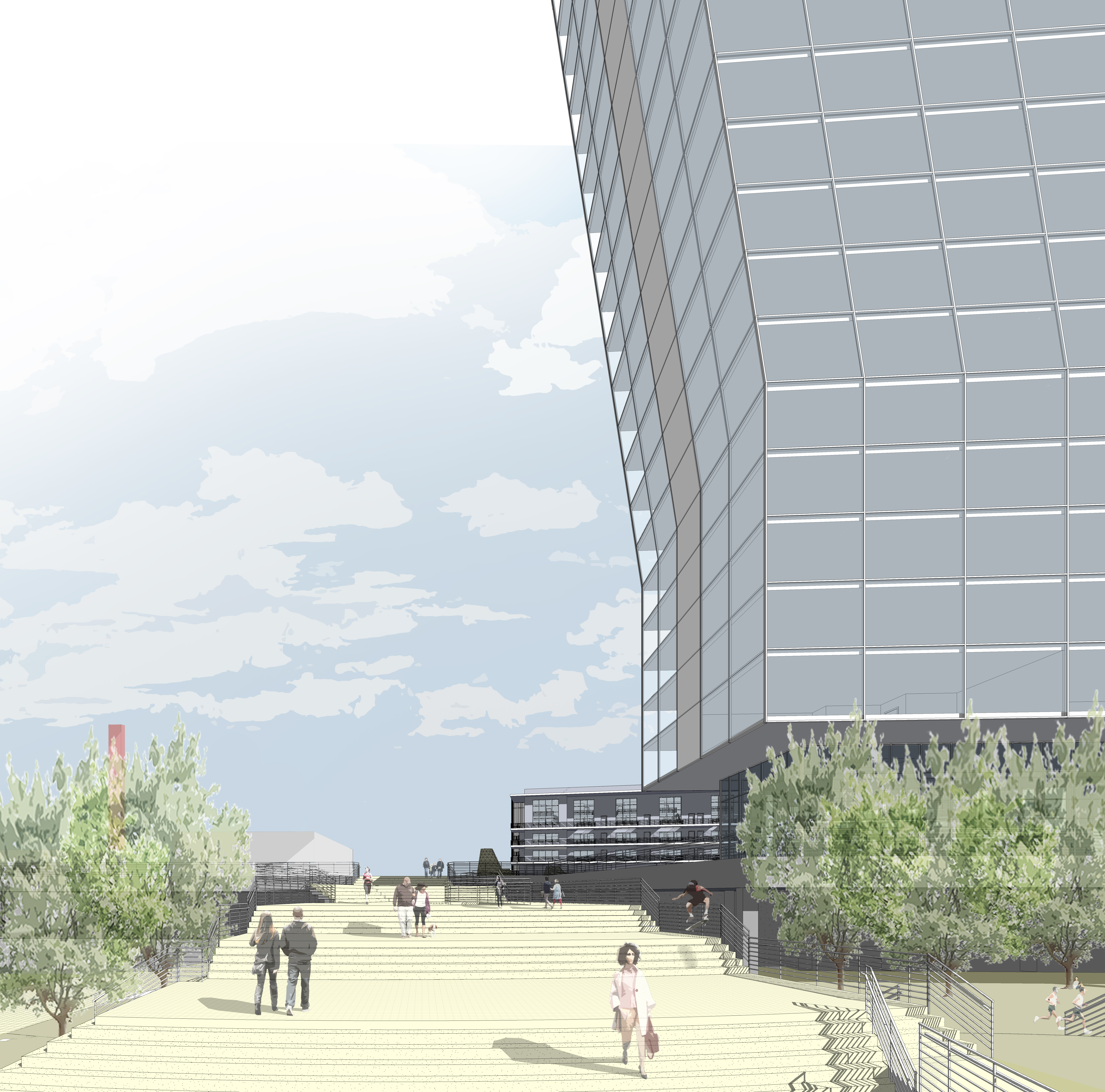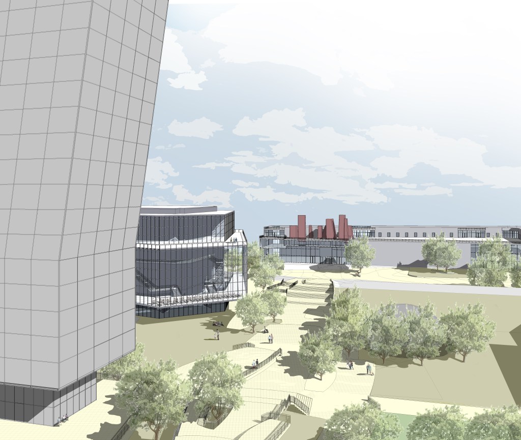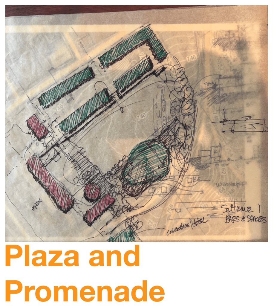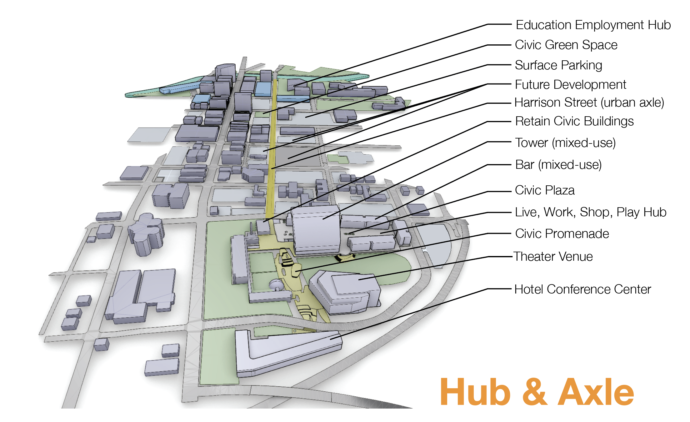 - Extending Hudson Street with a civic promenade connecting it to the commerce and park elements.