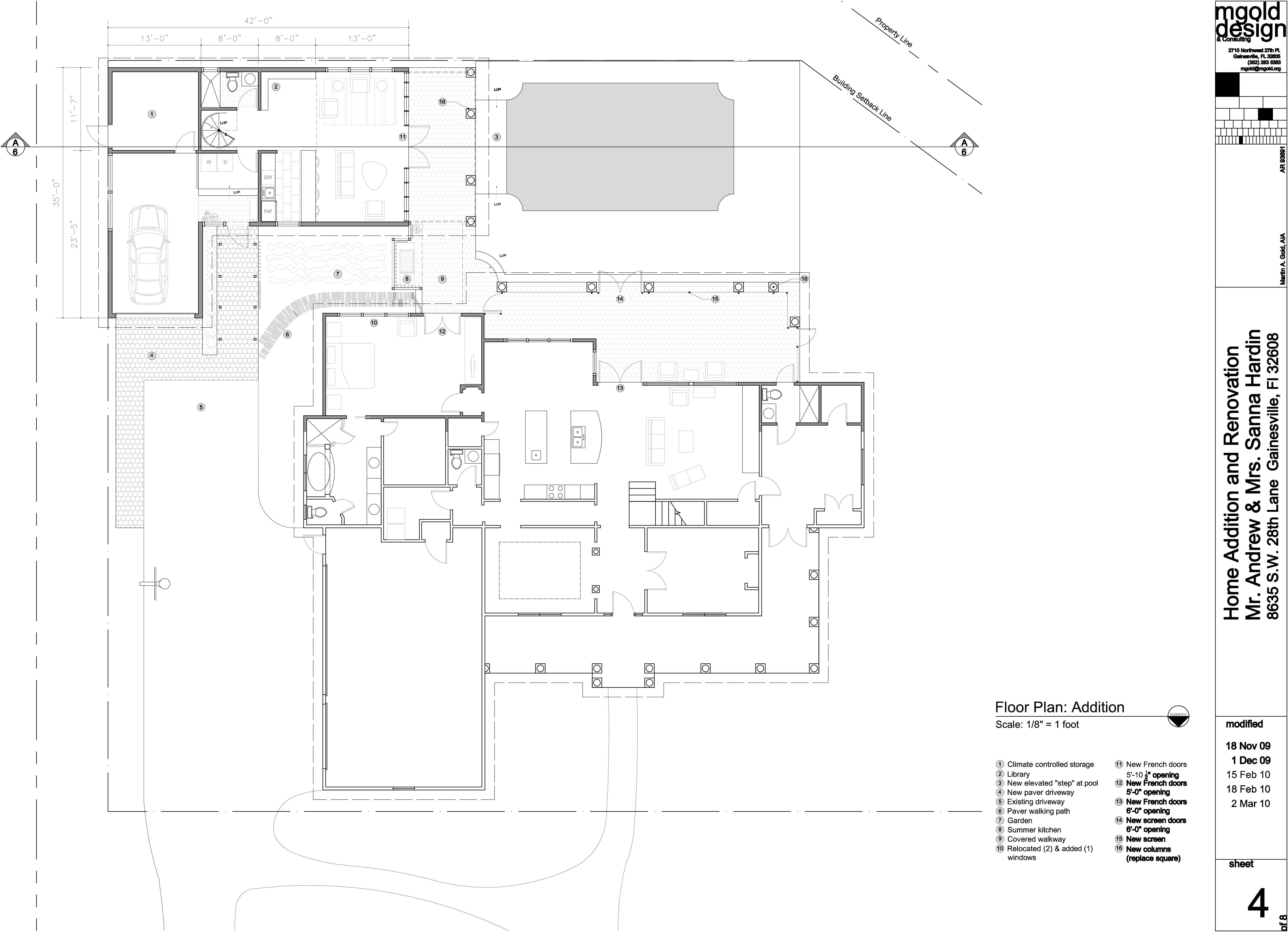 The proposal attempts to pull together auto entry from the driveway, walkable access to the driveway with a semi-formal entrance to the guest house, and a formal relationship to the pool and classical elements of the existing home that physically connects to the house for protected circulation between the structures.