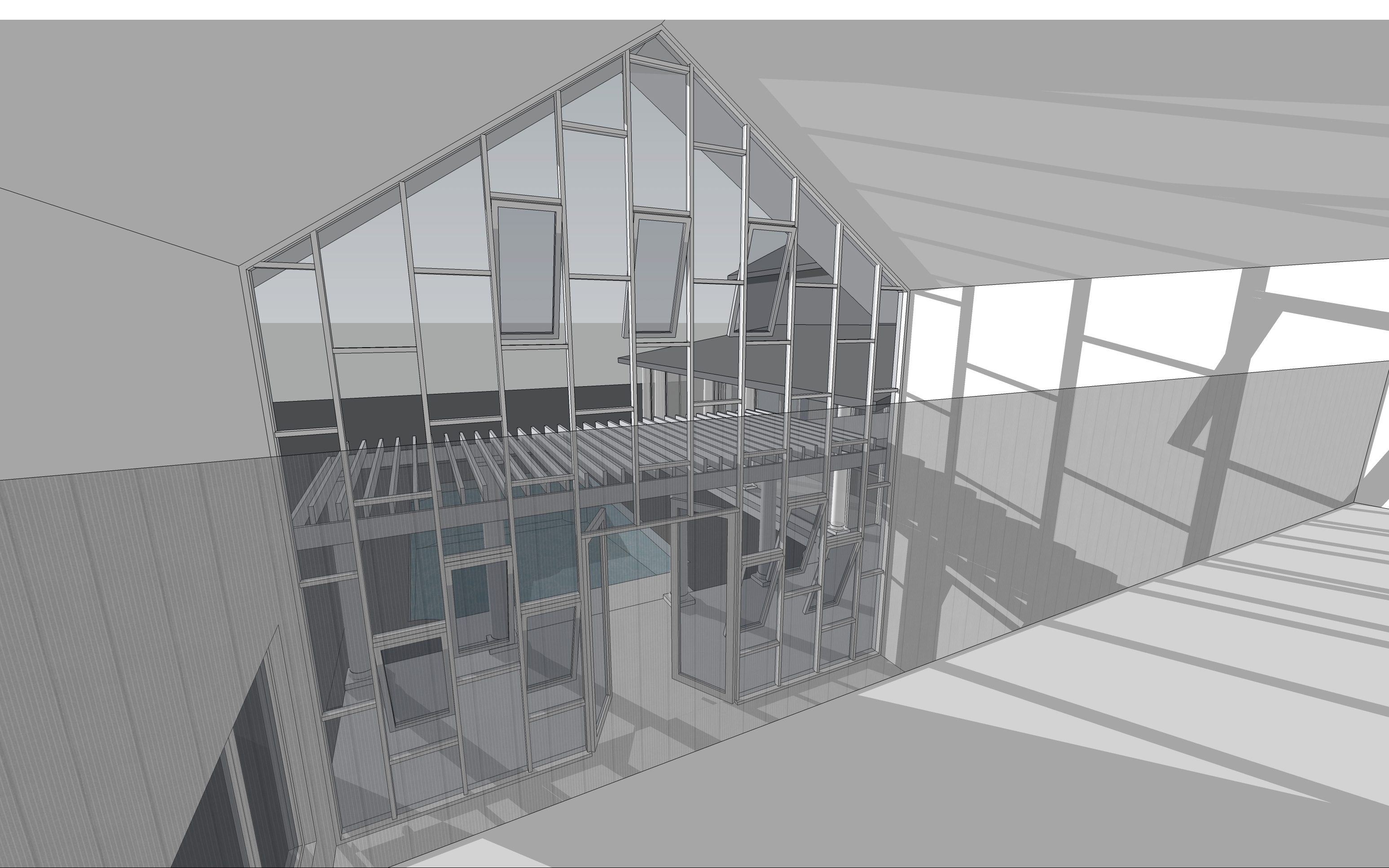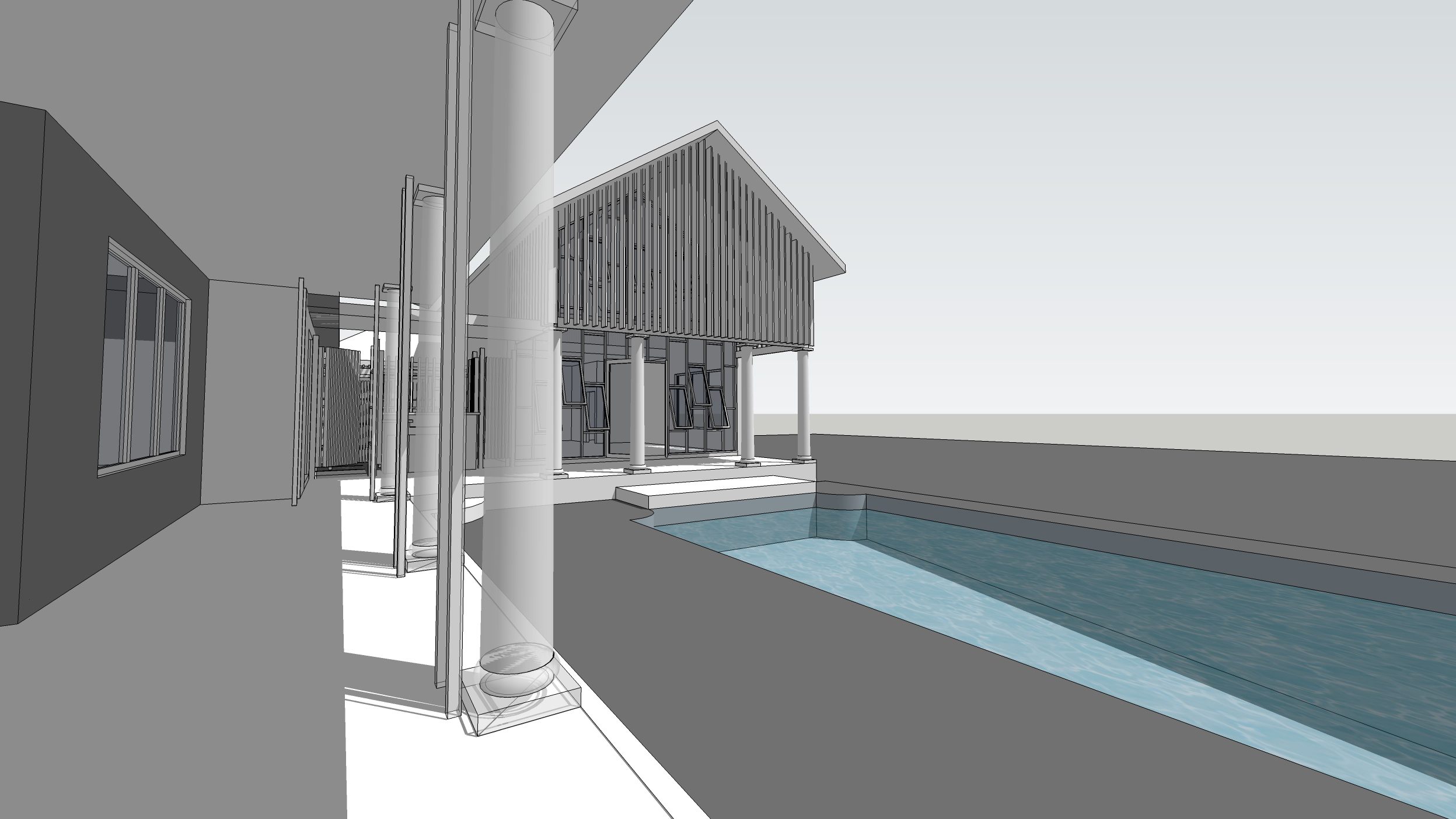 This design was not only for a pool and guest house, but an art studio and garage for a cherished vintage automobile with an outside kitchenette with grill. The proposal seeks to bring these tangential program elements together while also resolving the formal neo traditional architectural language that has been established in the neighborhood of Haile Plantation, just outside Gainesville, Florida.