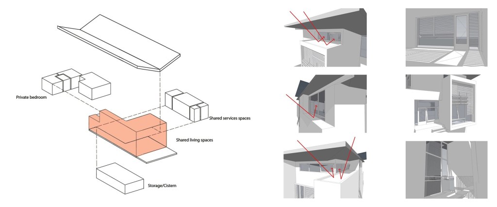- Lite House bedrooms are designed to open to nature as ‘sleeping porches’ during the temperate seasons to enhance a connection with the site and place. This uses a combination of porches and windows. The room and porch can operate collectively as mentioned or independently during hot or inclement weather.