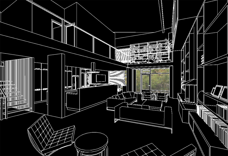 Although not public in the classic sense, these are the entertainment spaces where residents host visitors and engage in the more public activities of dwelling. Double height spaces are designed to convey the sense of a large luxurious space even though the floor area has a great economy. These spaces also become the interface between the home and the community and moderate the scale of the commons and the scale of the more private residential spaces. The high spaces enhance natural cooling, daylight, and view — which contribute to well-being.