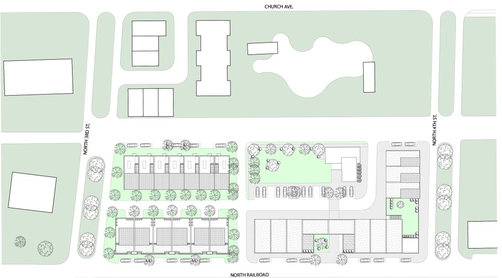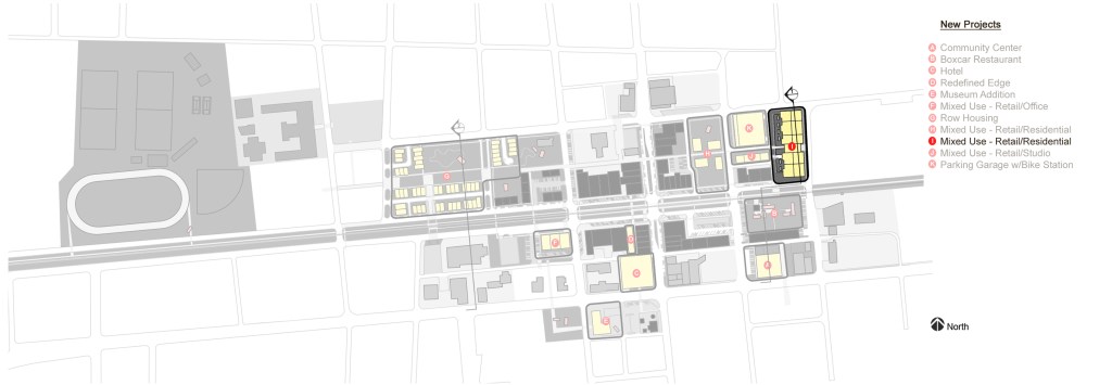 While the other larger restaurant will be placed on top of the existing buildings for vistas of the trains and new green space. Courtyard housing is projected to be located downtown on a currently sparse lot that would further connect the residential space to the downtown area. With this notion, the market for apartment-style housing returning downtown would force owners to upgrade their infrastructure to meet the demand for housing in existing urban buildings.