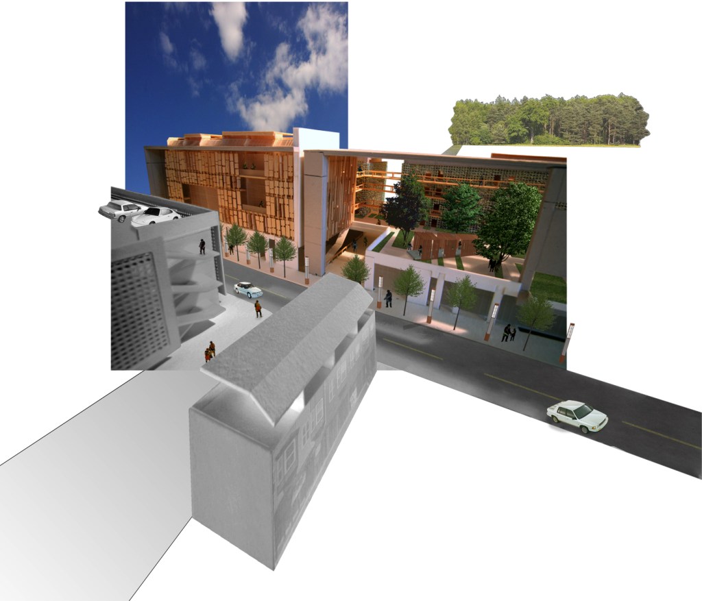 1) Row Housing 2) Parking Garage 3) Pavilion 4) Commercial Center 5) Civic Park
