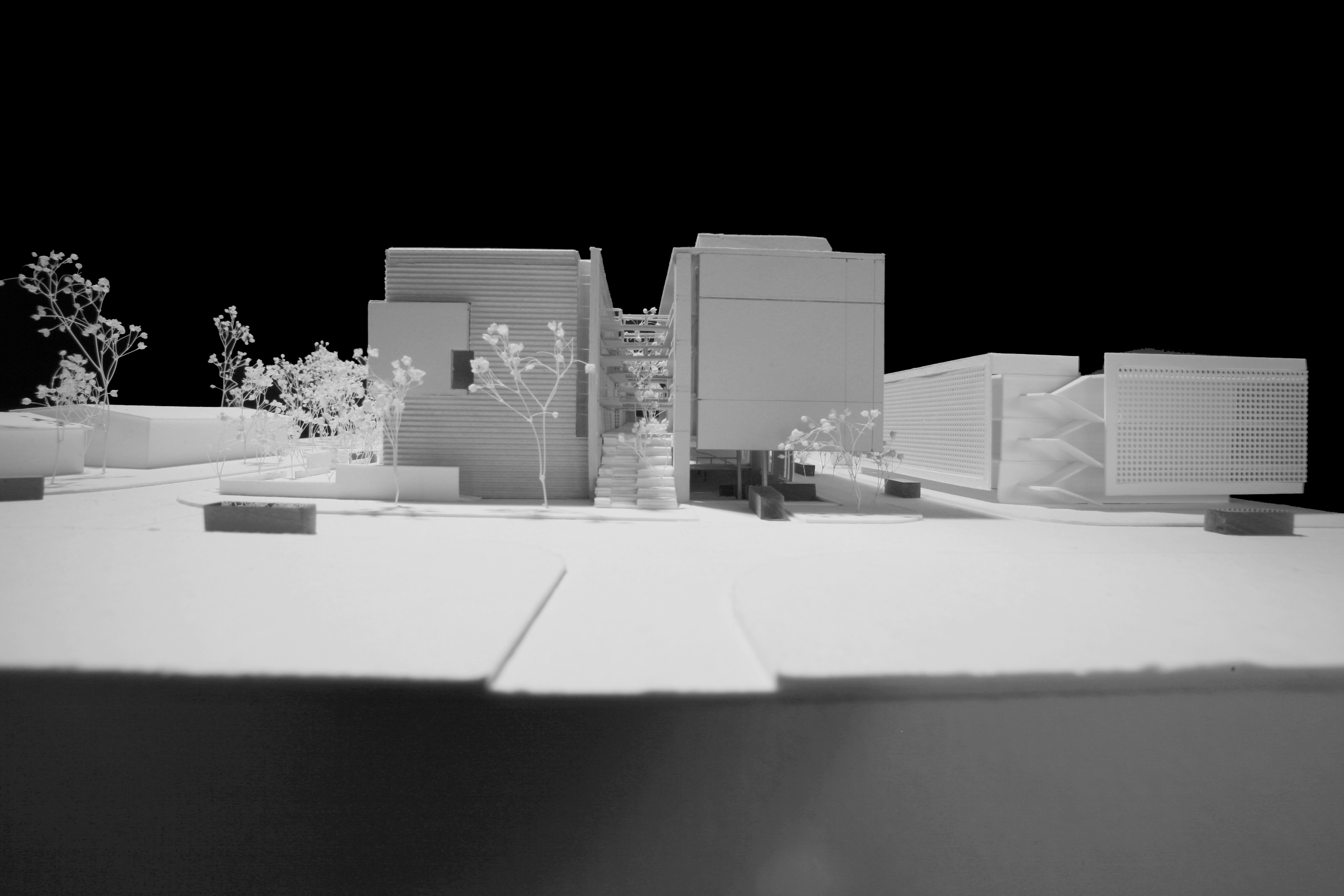 Strategies include the location of important program elements on either side of the track with connective open spaces that link across in conjunction with streets as well as at pedestrian-only locations. These strategies provide the opportunity to make ‘short cuts’ and occupy exterior spaces that improve pedestrian connectivity. Furthermore, a railroad/cultural museum housed in ‘boxcars’ is located in the urban fabric along the railway that could provide a historic itinerary through the downtown — downtown as a museum.