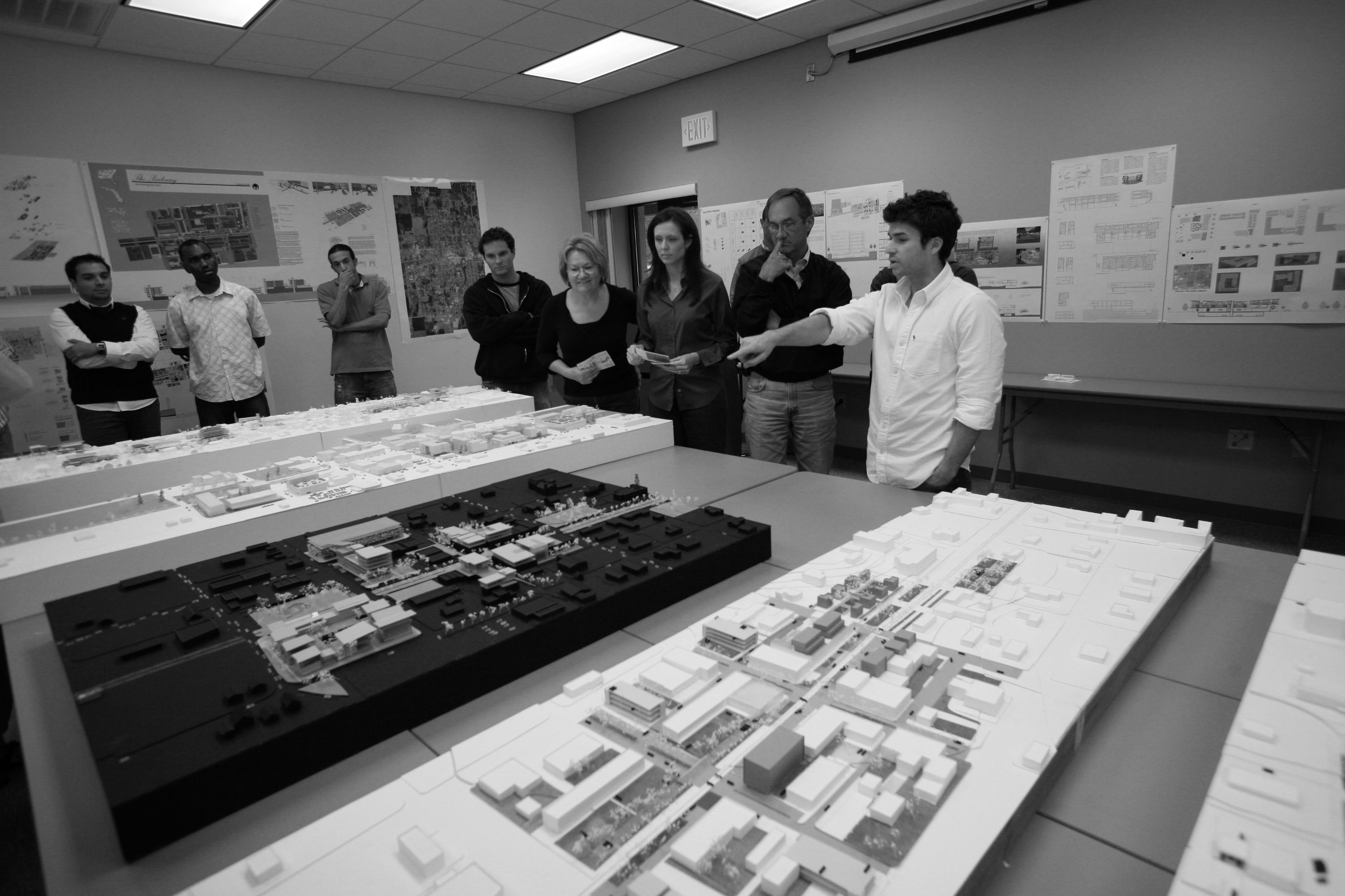 Each team is developing an analysis/ strategy for urban design and downtown redevelopment that includes urban sections, urban plans, physical scale models, and electronic models. The teams will focus on optimizing vacant land, identifying buildings for restoration/adaptive use, linking the two sides of the railroad track for improved pedestrian crossing, developing quality civic space, integrating parking (grade and garage), and locating key commercial anchors such as a hotel and retail establishments.