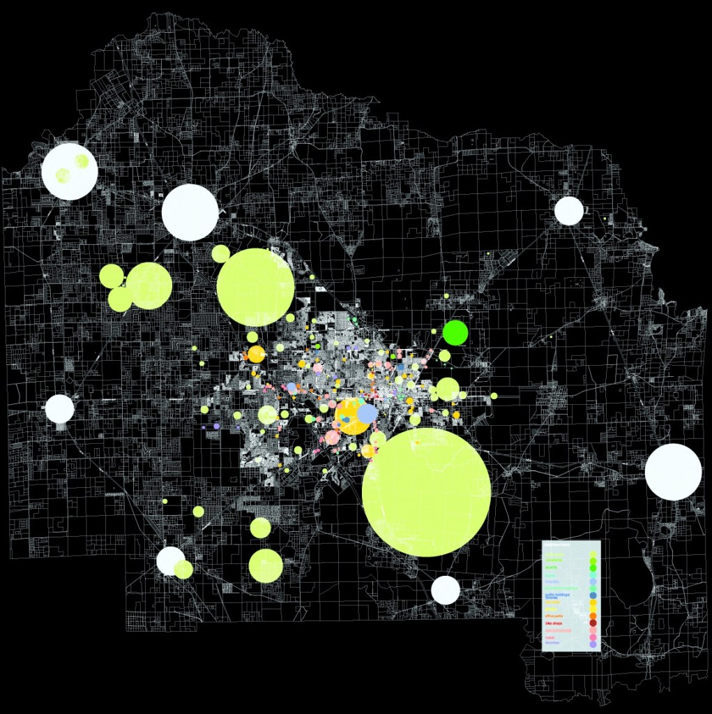 The parking garden proposed a formalization of the “satellite” parking around campus. Integrating a “green” parking lot with support businesses and infrastructure to store bicycles allows a park-n-ride model to exist for cyclists to get in and out of campus more easily. It