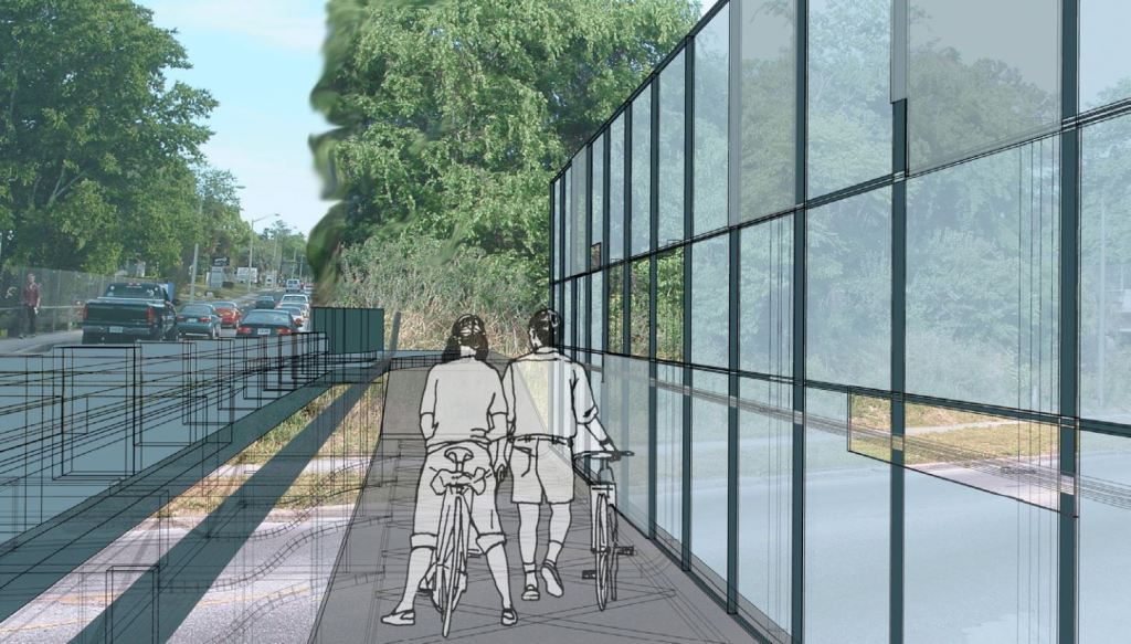 The Transporting Ecologies studio explores placemaking through ecologically sensitive integration of landscape civil infrastructure and community as the architecture of civic space. Alternative design proposals for specific bicycle and multi-modal events emerge that apply conceptual strategies in response to the local landscape, hydrology, flora, streets, planning morphology, materials, culture, and climate. Visioning of latent potentials emerging from a connected bicycle-pedestrian network integrating civil infrastructure, natural ecologies, and civic space promotes a healthier, more social, and sustainable quality of life.