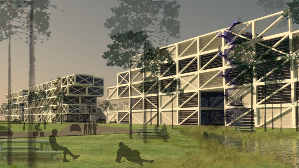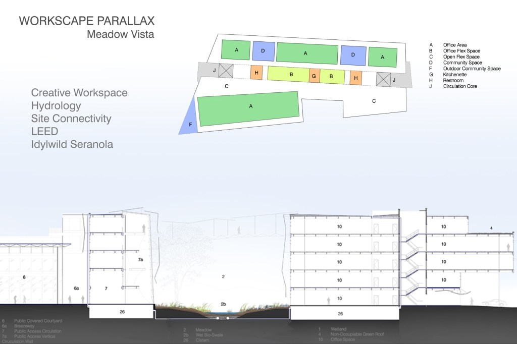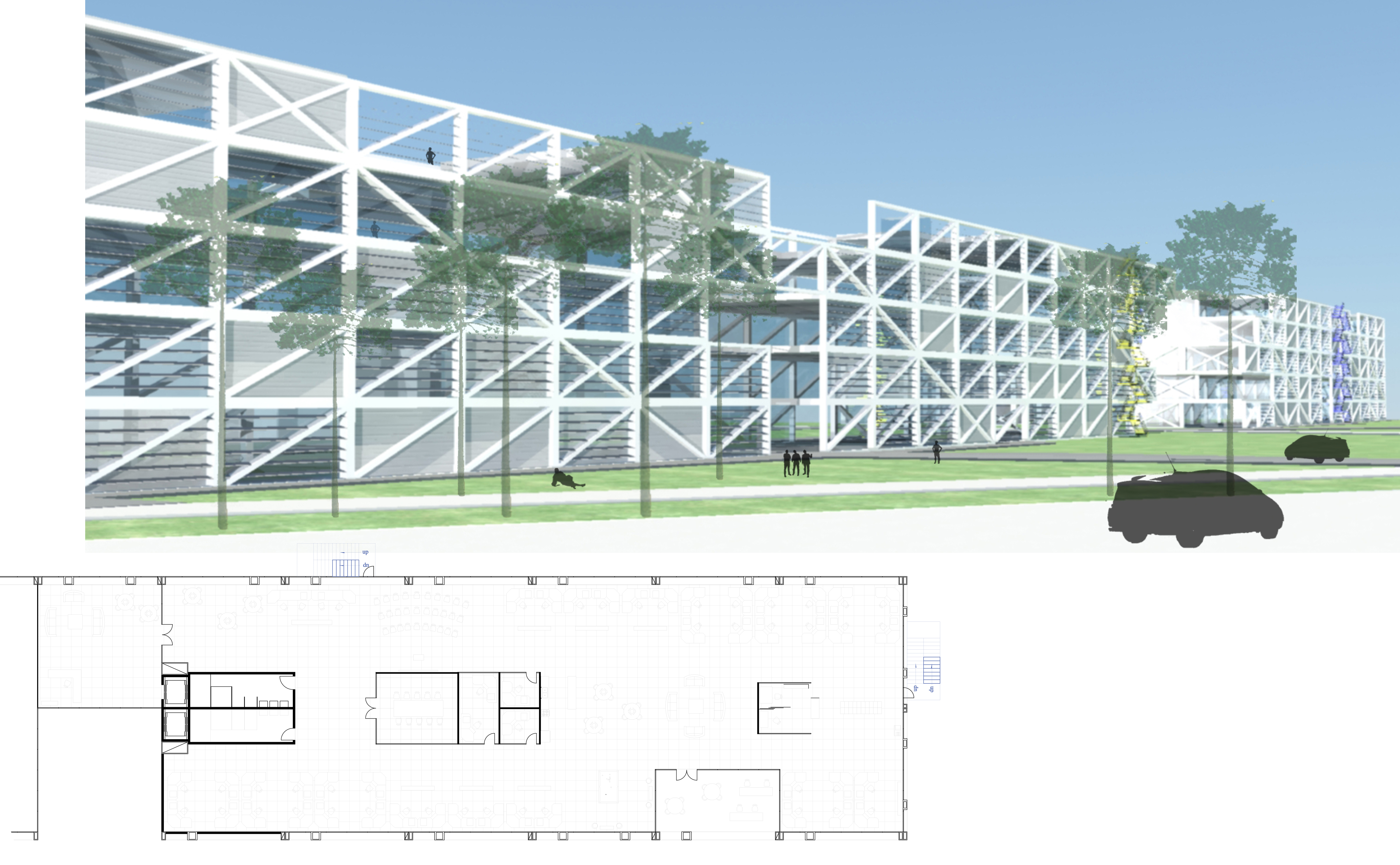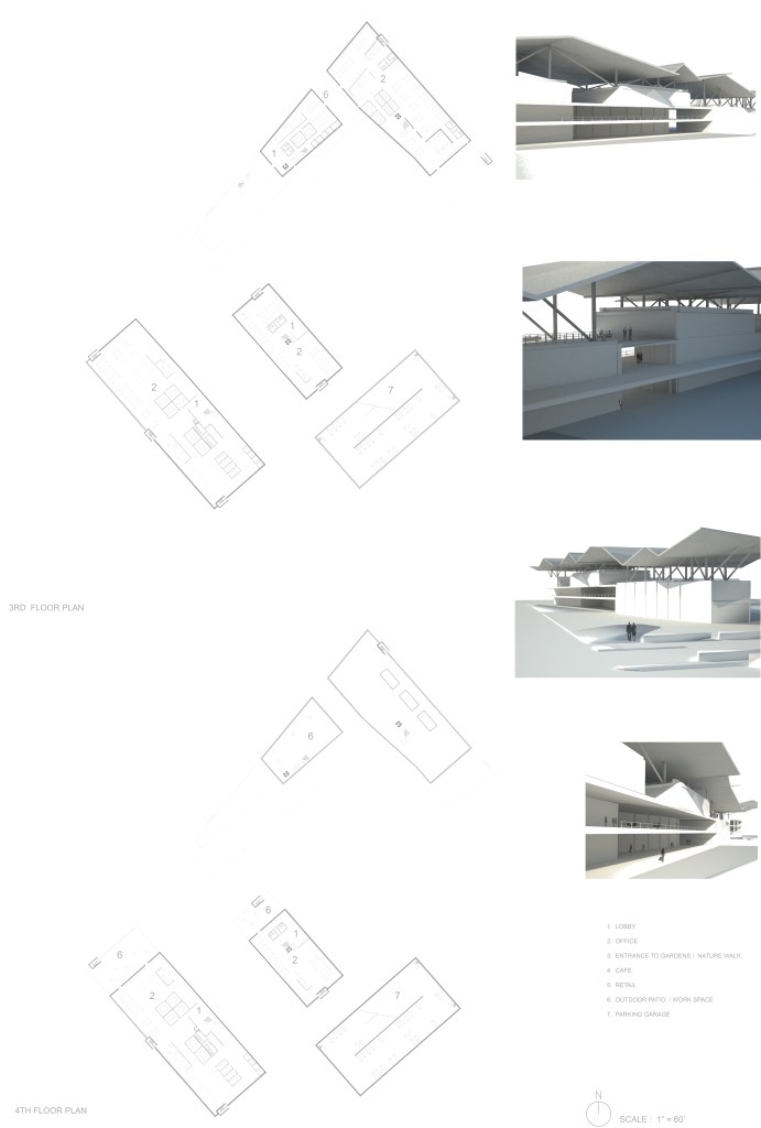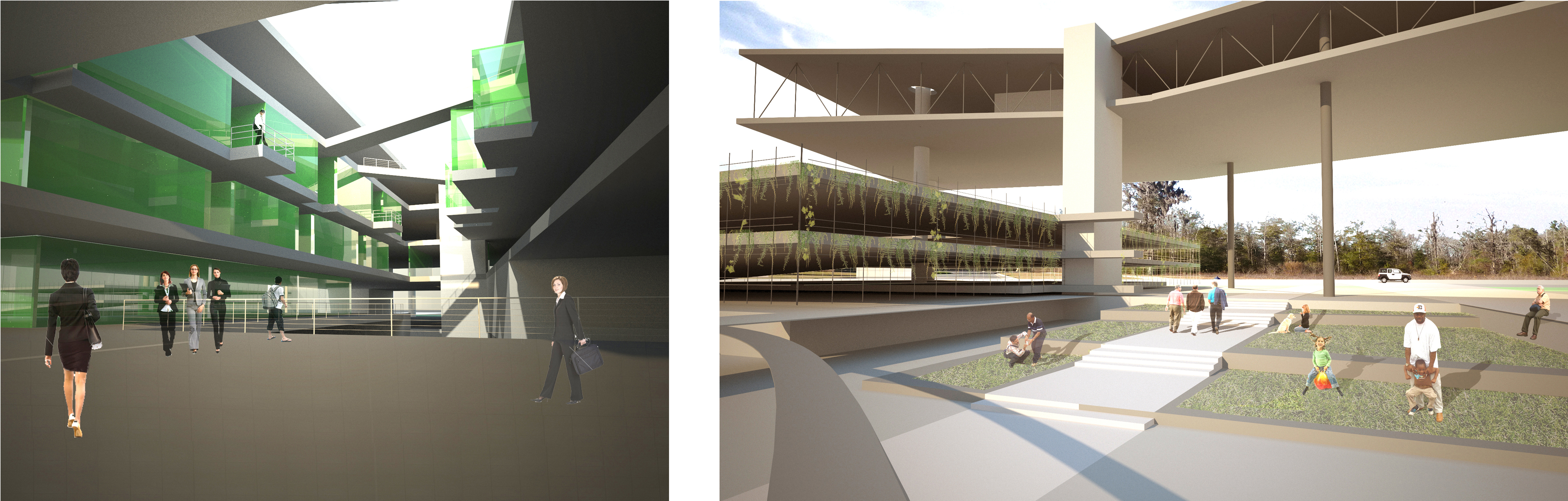 The proposal is focused to create office spaces that bring the innovative culture to the city of Gainesville as well as addressing issues like climate, energy, hydrology, and transportation.