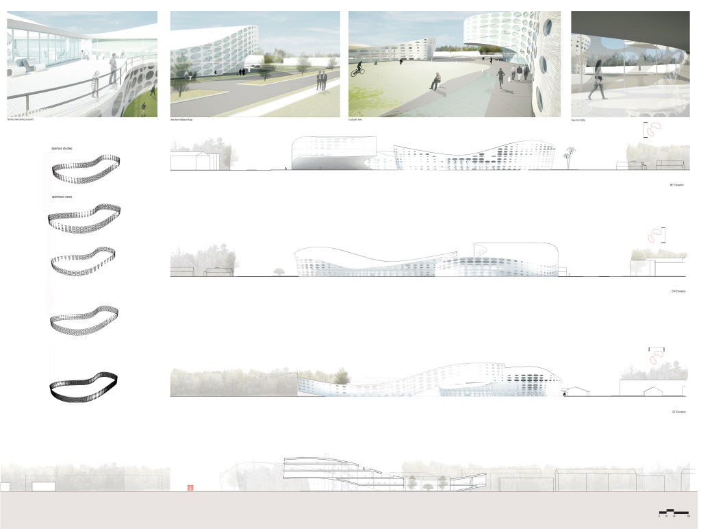 Designs are presented as forward-looking conceptual proposals that could be feasibly developed. The proposals incorporate typical structural systems, building enclosure methodologies, and code-compliant circulations systems. Innovative elements typically focus on the building skin in terms of filtering daylight, shading the structure linking exterior usable space, and providing views to the building occupants.